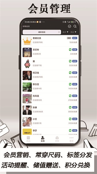 肃客会员进销存管理是一款为服装老板提供掌上营销的软件,主要为会员用户提供优惠福利。在应用中就能对会员用户进行管理,每一位会员用户都能详细的记录,用户可以随时查看,便于能详细了解。可满足每一位用户的使用需求,让你管理会员、营销服装更加的简单方便。