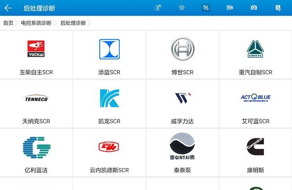 后处理诊断与年检功能U包括博世、、天纳克、凯龙、潍柴、康明斯、玉柴、重汽、迪耐斯、艾可蓝等后处理品牌的故障检测与刷写功能、OBD年检功能、CAN网络扫描功能。