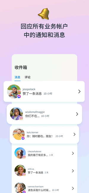 --一站式回复所有消息和评论,从而与更多客户建立联系,甚至还可以借助自动回复节省时间