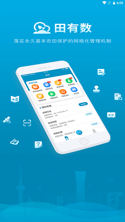 田有数是一款用与北京市田长制实施的APP,主要用于农田保护的全面管理与监督。通过政策法规明确田长的职责,实行田长管理,开展巡田管理,通过公众举报和巡田任务接收到问题线索,各级田长处理问题,并接受督导考核。田长制的目标是加强对农田资源的保护与利用。