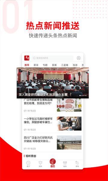 广汉融媒app,一款全新的融媒服务软件,凭借强大的网络技术打造了便捷的融媒平台,集新闻资讯、民生服务、政务服务等融为一体,完全实现了线上智能化,让用户直接在手机端就能享受各大同城服务,超级的方便好用,有需要的朋友快来下载体验啊~