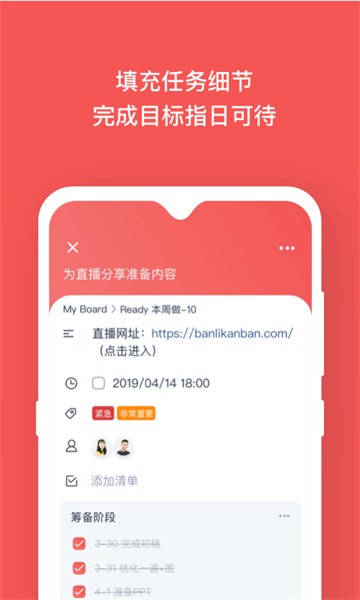 轻松掌握团队成员的任务情况――任务是否完成?遇到什么状况?一目了然,尽在掌控。设置到期日,掐准deadline。