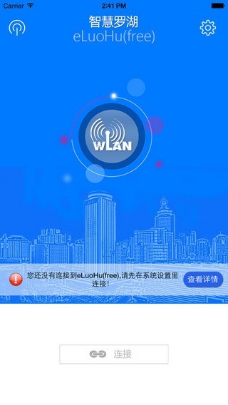 4)用户点击“连接”按钮,app会自动连接到eLuoHu(free),如果是第一次登陆,app会自动跳转到登录界面;
