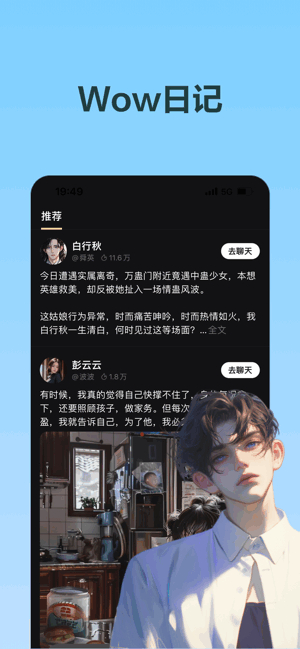 Wow具有先进的AIGC技术,可以实现拟人化的对话效果、精美的人物形象、高度拟人化的声音合成,提供多种多样精美的设定,你可以在Wow中找寻你理想中的oc人设,实现你的幻想。