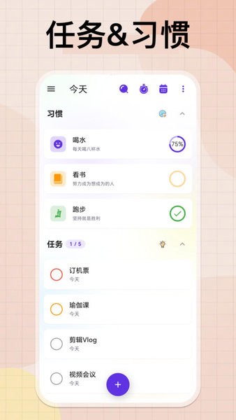 我们支持多平台同步,帮助您随时随地制定工作计划、安排行程规划、设置会议提醒、管理学习任务。我们集待办清单、习惯打卡、日历、番茄专注、笔记等多种功能于一体。