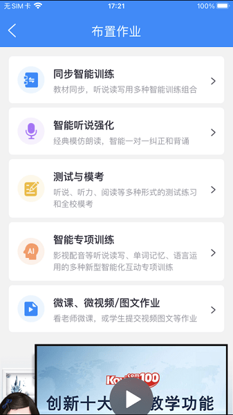 ky100cc100口语100教师助手是专为清睿口语老师们打造的教学辅助工具。软件支持智能批改作业,解放老师的双手,花更多的时间在教学上;还可以给布置作业,安排针对性的口语练习,有效提高学生们的口语能力。