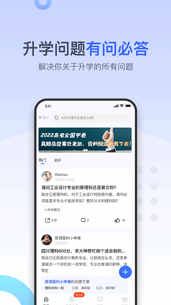 大鱼升学最新版是为学生提供升学和志愿填报服务的应用软件,为大家的升学问题提供参考意见。实时了解最新的政策消息,支持在线问答,查询相关数据,还提供职业测评服务,分析优劣,帮助大家精准填报志愿,提高录取的概率,好用又实用!
