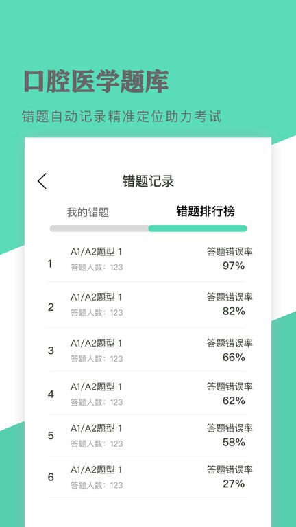 口腔医学题库-助您考题必过!一款专门针对口腔执业医师而研发的应用软件,为考口腔执业医师,助理医师提供免费,海量的在线题库学习模拟考试服务!是考生参加口腔执业考试的掌中宝,让您的医考之路通畅无阻,轻松通过口腔执业医生考试!
