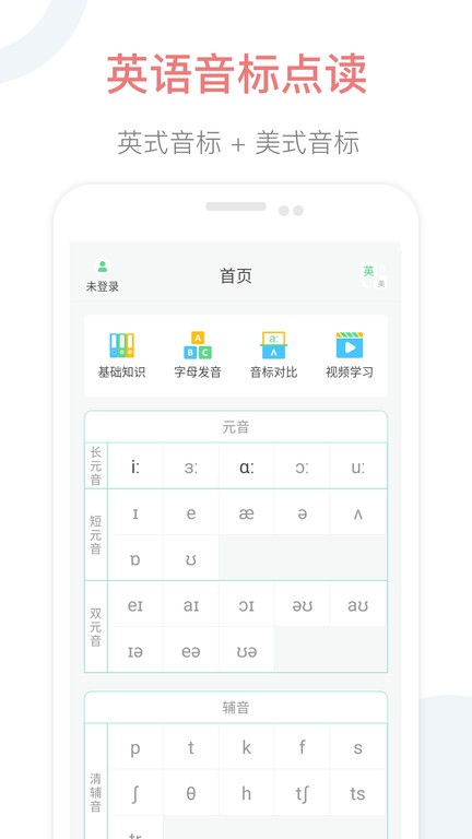 英语音标点读手机版这是一个专门提供音标学习的英语助手,通过口音跟练的方式来学习发音。各种发音技巧以及读法讲解汇集于此,为音标的学习效率更上一层,软件提供了美式、英式两大发音教学,有需要的用户可以来下载使用。