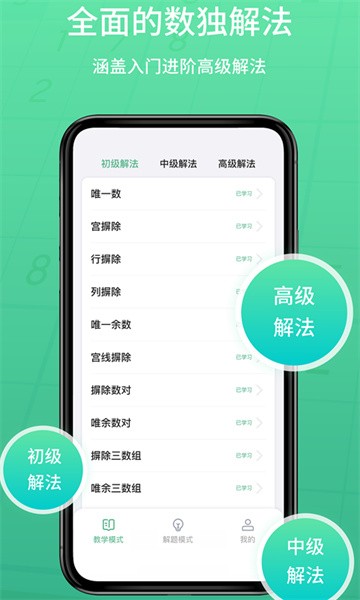 从基础解法到高阶解法都一一讲解演示,详尽的教程带您了解数独的解题技巧,在解题的过程中发现数独给您带来的无穷乐趣。