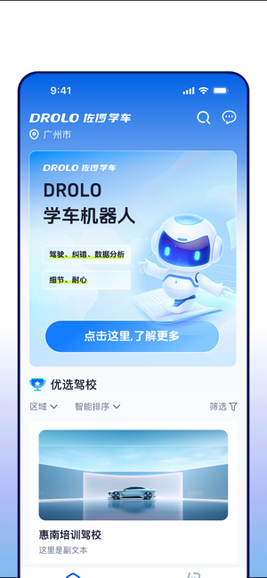 DROLO学车替你把关靠谱驾校。提供驾校排行榜功能,根据用户学车需求,一键筛选优质驾校,价格透明,质量有保障,学车不踩坑。