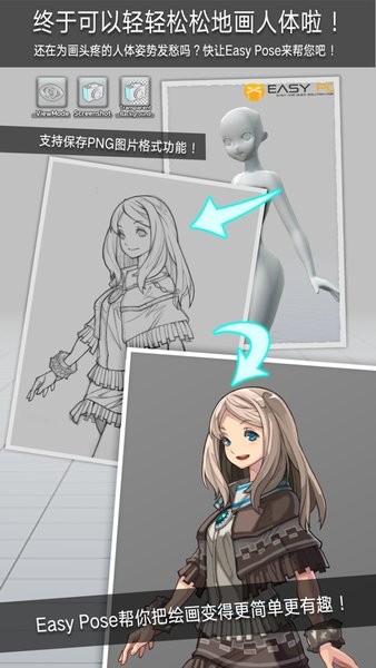 - 能够以PNG格式保存图像。使用Easy Pose和其他程序进行绘制时使用它!