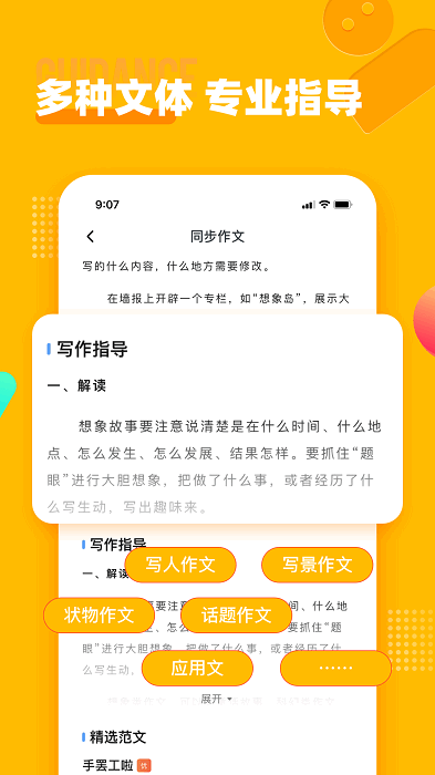 小学作文宝包含话题作文、写景作文、叙事作文、写人作文、状物作文、诗歌、应用文等各类文体,有小学生应掌握的人物描写、景物描写、诗词成语、名家名作等写作素材与语文知识,丰富小学生的写作素材库,打开写作思路;