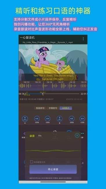 这个复读机软件真的挺实用的!它能帮外语学习者高效练习发音和听力。比如说,你可以用智能断句功能把音频或视频分成一小段一小段,方便反复听和跟读。我还很喜欢它的变速播放功能,可以调快或者调慢,特别适合想仔细听清发音细节的时候用。