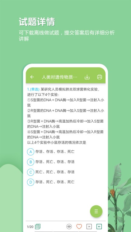 高考生物通app为你的高考生物科目提分加油。还可以同步练习高中生物各个教材版本、各个年级的试题。