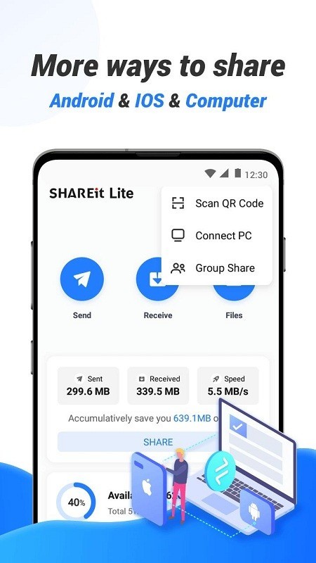 shareit lite 2025是茄子快传极速精简版的传输神器,体积更加小巧轻便,功能丰富又强大,可以随时随地分享传输数据和文件,操作简单便捷,速度高效,无需联网,跨屏传输,还可以帮您清理垃圾,智能管理,优化释放存储空间,很是实用!