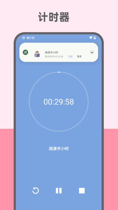 当开始完成一项需要计时的打卡习惯时,手机自动弹出专注计时界面,不用额外记录打卡任务时间,节省精力,可以更加专注在完成日常习惯打卡任务上。