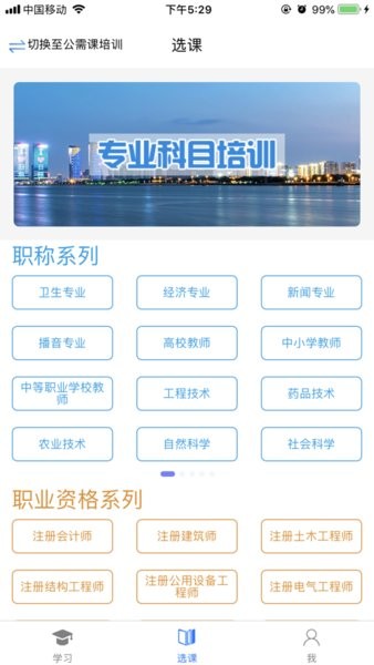 海量课程,按需选择,专业技术人员可以根据自己兴趣爱好、职称系列选择公需课和专业课;