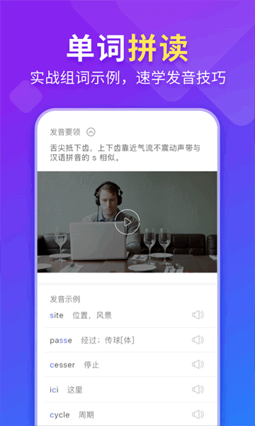 2、确保纯正发音,每个音标的发音音频都是专业法语外教录制而成。