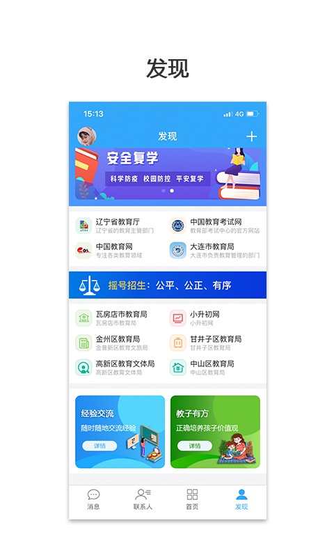 2、进入发现版块,查看各种官方网站和媒体的动态内容,了解最新招生安排;