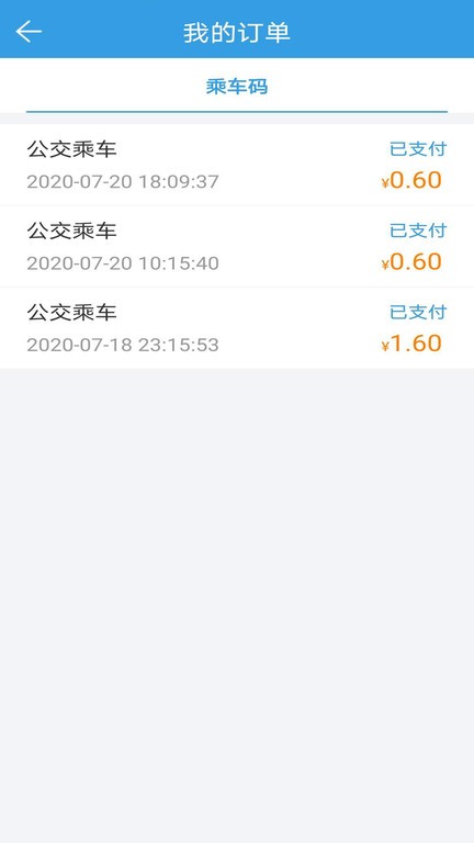 打开我的订单版块,查看自己的各个支付订单信息,了解自己的乘车情况