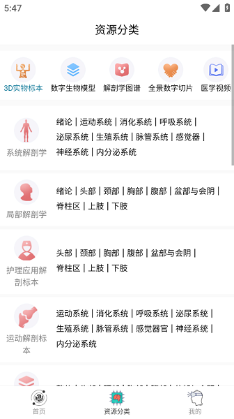 云解剖最新版是一款提供有关解剖医学教育的应用平台,覆盖丰富的内容,包括实物标本、智慧标本、数字切片、解剖图谱、医学视频等,分类清晰,随时学习,支持3d在线解剖,采取用动画、虚拟互动技术展现,发现更多医学知识!