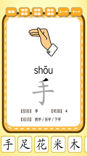 跟我一起学写字游戏软件是非常好用的帮助小朋友们学写字的手机app,在软件上有超多的基础文字读音和写法,帮助小朋友们能够快速的学习到超多的汉字。
