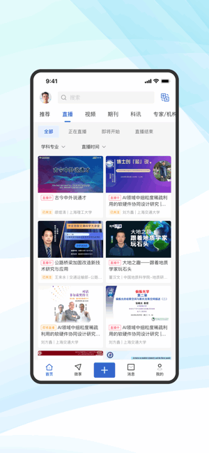 -- 全新直播功能,学术大咖云集,满足你的求知欲