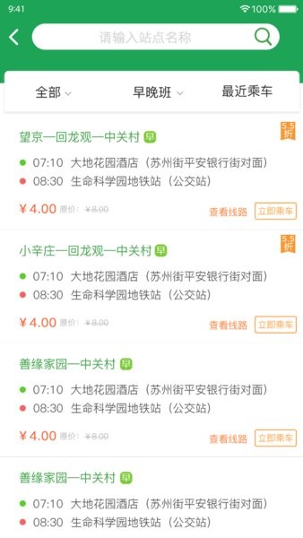 可按区域、早晚班、最近乘车等信息筛选线路;