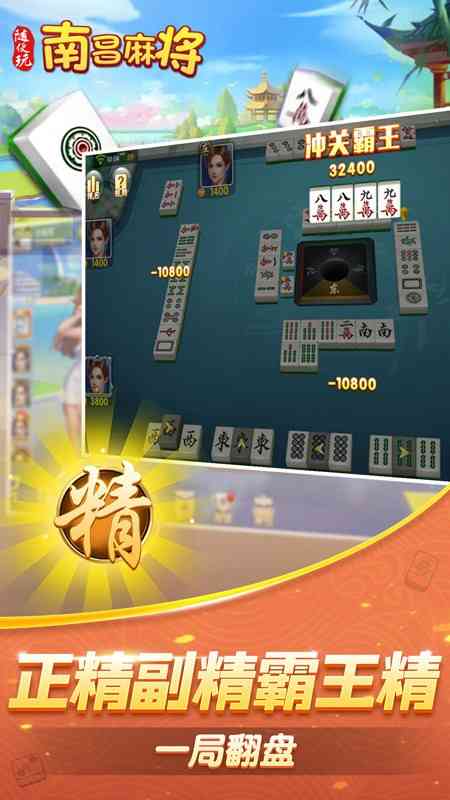 南昌麻将游戏是江西省南昌地区流行的麻将,南昌麻将与流行于国内其他地区的麻将打法有较大的差异,在长期的游戏实践活动中 ,形成了自己的鲜明特色。最大的特色是三张不重复的同类的字牌可以组成一副顺子,再加上比全不靠更容易和的“十 三烂”的新牌型的引入,使和牌更加容易;又由于使用了较多的精牌DD“正精”和“副精”,使得天和、地和的出现频度大幅增加。另外由于游戏引入了霸王精、冲关等奖励分,使“一局翻盘”成为了可能。