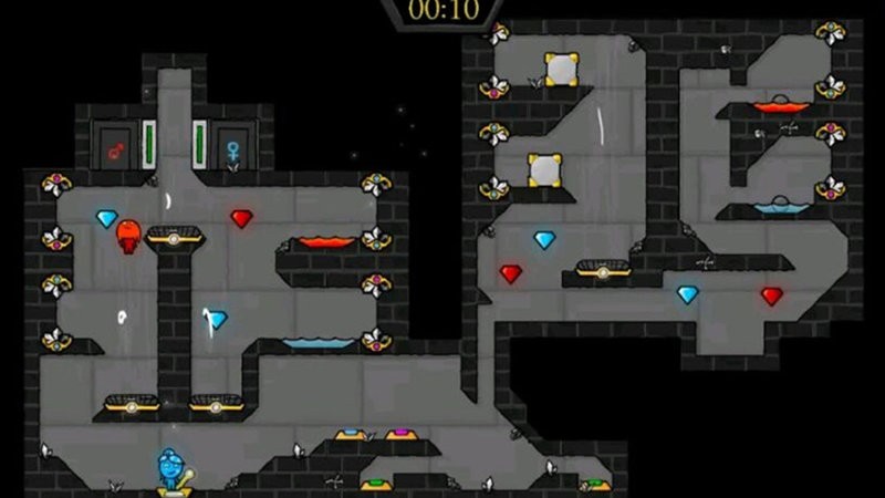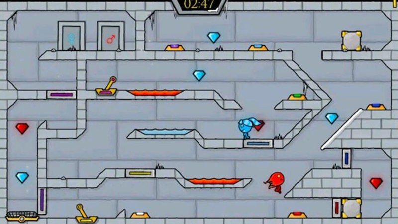 休闲益智破解机关解谜闯关游戏《红蓝冰火人》,游戏中分冰人和火人2个角色,玩家需要分别控制他们,破解机关,打开迷宫出口,赢得胜利。延续经典冰火人系列,开启全新解谜之程吧!