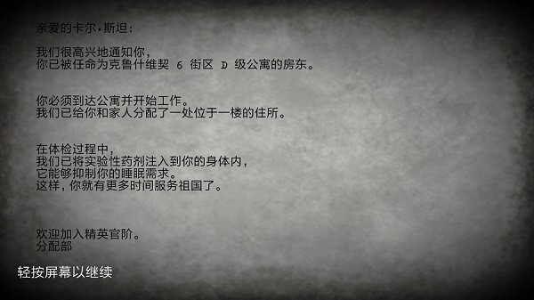 极权政府控制了个人和公共生活的每一个方面。法律是压制性的。监视就是全部。隐私已死。你是政府安插在公寓楼里的经理。你的日常工作是让公寓楼成为来来去去租户的甜蜜窝。