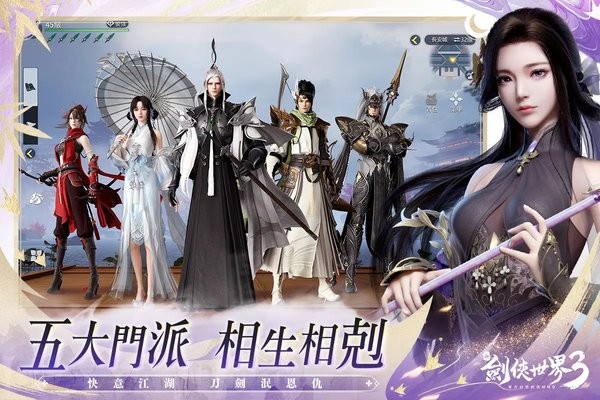 新剑侠世界3游戏是一款大型角色扮演类的武侠mmo手游,打造超大幻想世界,提供不同职业角色,五大门派相生相克,春夏秋冬变幻无穷,天气交互,支持自由摆摊交易,打宝赚钱,还提供多元社交玩法,邂逅浪漫情缘,多人即时竞技,体验江湖的快意恩仇!