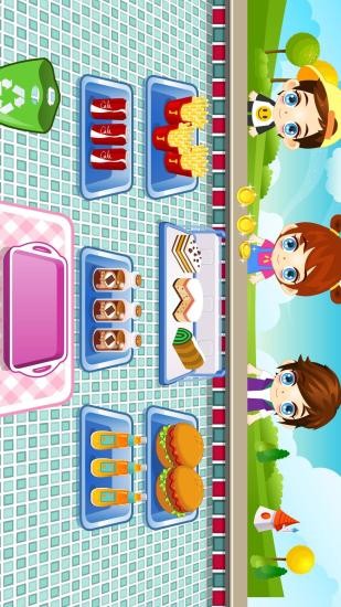 4.汉堡店打工,根据顾客的需求拖动对应的食物卖给他们,获得金币。