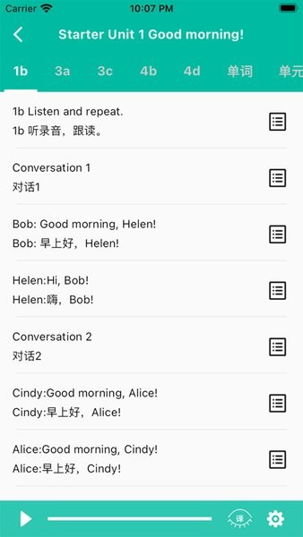 4.包含七年级到九年级的单词和课文(同步翻译),且都配有高清的真人发音,可跟读、可点读。