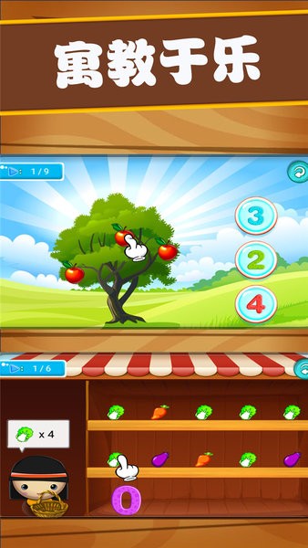 教学游戏,适合不同年龄段的孩子。让宝宝们掌握识别物品的数量,判断数字的大小关系,10以内加法、减法乘除法等等知识点。