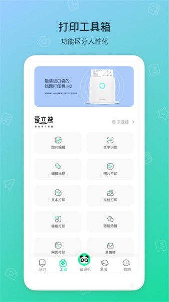 这个错题机H2 app听起来挺实用的!它是由荣耀和爱立熊一起开发的学习类软件,主要功能是帮助用户记录错题并打印出来,还能编辑文档、识别文字、打印标签和照片等等。最让我觉得方便的是它的打印功能,不用手抄错题,拍照就能直接打印,节省了很多时间和精力。