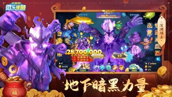 游戏在传统街机捕鱼卡通风格画面基础上进行了3D立体化升级,采用全新建模和渲染技术,整体画面鲜艳饱满,线条流畅灵动,将深海世界的奇幻氛围展现得淋漓尽致。