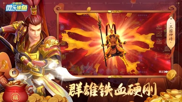 有西游降魔新海景、三国争霸新岛屿等多种主题场景,西游三国大BOSS来袭,美人助阵战神称霸,神兽降世,秘笈掉落,炮炮破亿爆金爆装备。