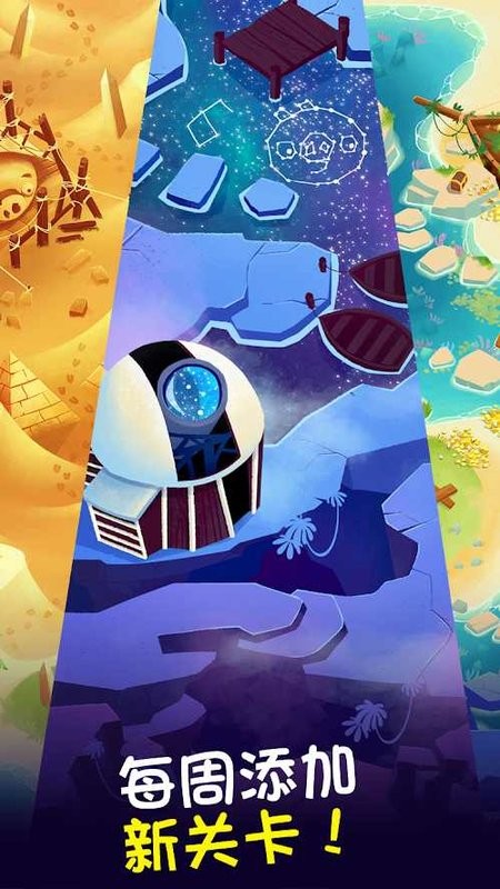 而对泡泡龙玩法烂熟于心的玩家们来说,在体验本款游戏时,仍旧还是会发现玩法正潜移默化的发生变化。虽然同样拉着弹弓,弹射泡泡,但射爆猪猪,拯救海洋生物,寻找被困精灵等,都一一呈现在玩家面前,让玩家感受别一番的小鸟系列;并且每一个关卡的泡泡形状也是非常有趣,有字母型,有旋转时钟型,造型各异,背后也自然是难度提升了。