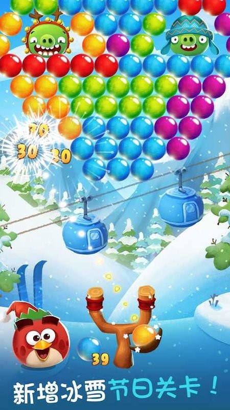 并不是每一次僵局都能有很好的运气触发怒鸟技能的,所以使用游戏中的道具来解决一些扰人的难题吧!!游戏中既有能直接冲破所有障碍的火球泡泡,也有可与任何颜色泡泡匹配的彩虹泡泡……这些道具可通过完成游戏中的任务和成就获得,特别是在春节期间,玩家每天都能通过完成特别的节日任务,获得丰富的道具。