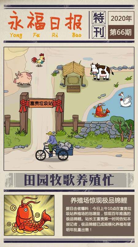 我自己觉得这个游戏挺有意思的,毕竟谁还没想过白手起家当老板呢?虽然现实中捡垃圾可能不太体面,但游戏里的王富贵通过变废为宝发家致富,这种逆袭的故事很励志。尤其是还能炒股和投资,感觉像是在玩一个微型的人生模拟器,特别有代入感。