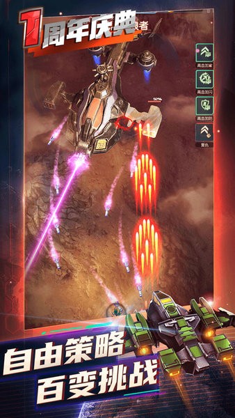 单手操作、抬手减速、全屏技能。随时随地体验经典飞行射击带来的超级快感!通过章节后可以尽情挂机复刷,释放双手获取丰富资源。