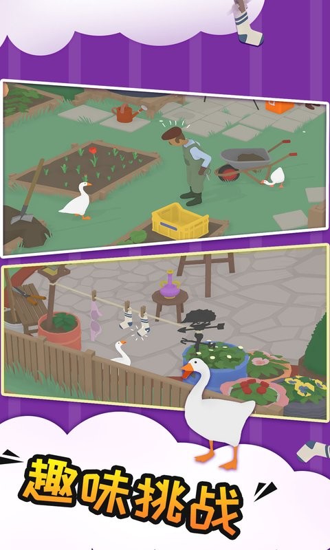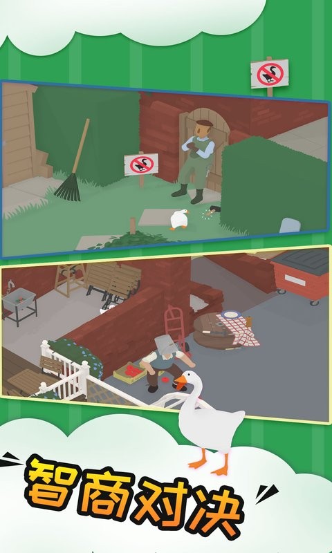 捣蛋鹅手机版是农场题材的闹剧搞笑游戏。游戏开始在一个安静祥和的村庄里,在一个可爱的清晨,我们的大鹅开始了自己的越狱捣蛋计划,而你要扮演的就是这只为所欲为的大鹅。置身于尚未察觉此事的村庄之中。在小镇中四处游荡,穿过村民的后院,踏入街边店铺,漫步在村庄广场,四处恶作剧、偷帽子、鸣叫,毁掉大家的好心情。
