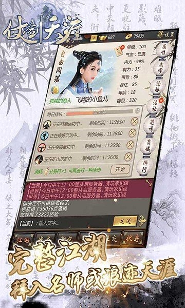 -- 经典的MUD玩法完美还原,完整江湖,拜入名师或浪迹天涯