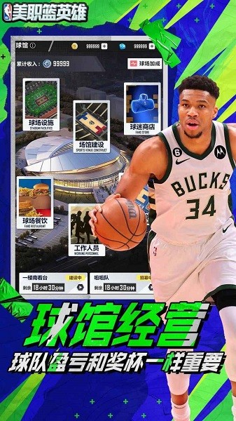 除了球员场上的排兵布阵,场下的球队建设也同样重要!《NBA英雄》2.0版本独创的球馆系统将从球馆建设、广告招商、球迷商店等多个维度对球队展开经营,为您的球队制造尽可能大的收益!
