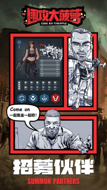 《围攻大菠萝》是一款以末日生存为背景的策略卡牌放置游戏,剧情丰富,画面沉浸感强。玩家需要组建幸存者小队,在末日世界中寻找生机,抵抗丧尸进攻。游戏中有多种角色可供收集和组合,通过策略布局打造强大阵容。