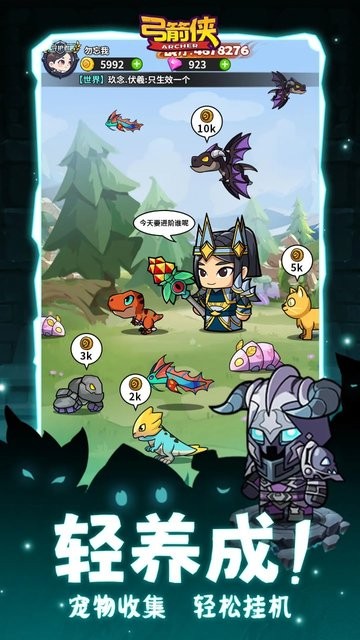 弓箭侠是一款以策略卡牌为核心的养成类回合制游戏,画面采用卡通风格,玩法简单有趣,适合喜欢轻养成和放置挂机的玩家。游戏中可以收集各种角色、宠物,通过提升英雄属性、进阶和技能强化来打造强大的队伍。最新版本2024提供了抽卡自由的体验,新玩家还能享受免费百抽福利。