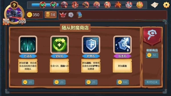 在游戏当中还有法术附魔商店,在商店当中会有很多的法术卡牌进行出售,玩家可以购买这些卡牌来帮助自己。