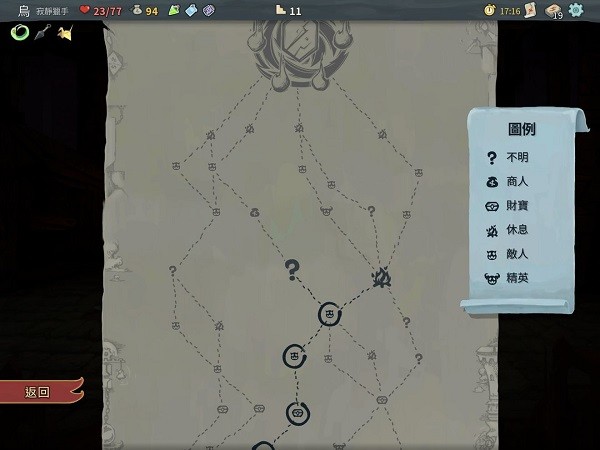 9.一层小怪弱怪池三个,二层弱怪池两个,三层弱怪池两个,打小怪收益极低,不要完全不敢打精英,在进入强怪池后,很多强怪池小怪强度堪比精英,在此时建议开始打精英,但也不要拿个特别弱的套牌追着精英打,因为每个精英都有直接让你死亡的能力,感觉打不过就走问号多的路线跑路。